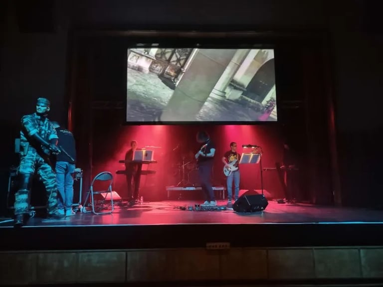 On stage we play live with (vintage) instruments known and unknown video game music supported by pixel art projections. Both music and pixel art is a creative interpretation based on the original music and art. Our performance is a tribute to all video game musicians, pixel art artists and (no longer existing) video game companies.